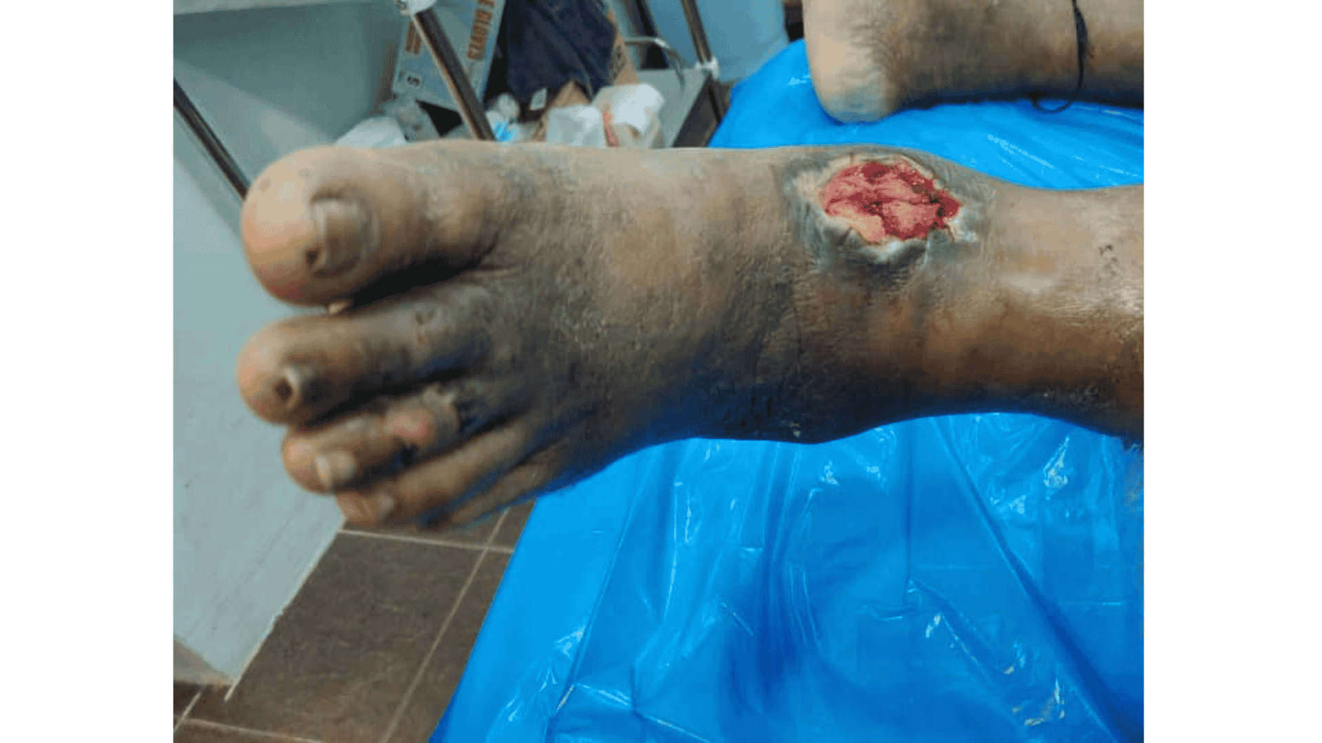 After the amputation, his foot condition worsened — the wound began to fill with pus and maggots. Once again, Ru*** was instructed by the hospital to proceed with amputation of the entire leg.